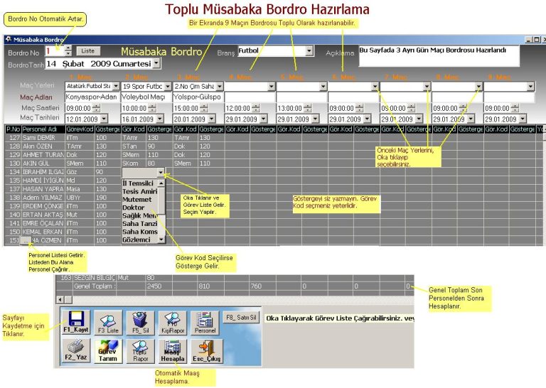 Müsabaka Görevli / Hakem / Gözlemci Bordro, Antrenör-Çalıştırıcı-Kurs Öğretmeni